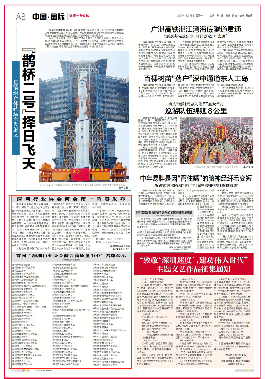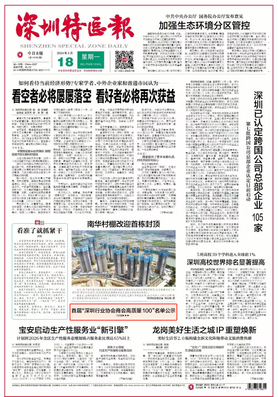 为打造中国特色行业协会商会“深圳标杆”,推动广大行业协会商会更好提升能力水平、更好发挥优势作用,为全市高质量发展作出新的更大贡献,同时,为政府购买服务、评优推荐、建言献策、双招双引等提供第三方评价参考。在深圳市社会组织管理局指导下,深圳特区报社、深圳市社会组织总会于2023年10月联合发起“深圳行业协会商会高质量100”遴选公益活动(本活动不收取任何费用)。历时6个月,经指标体系研发、申报、推荐、材料初审、实地考察、综合评分和专家评审,最终形成首届“深圳行业协会商会高质量100”名单。上榜行业协会商会均为AAA等级以上社会组织,所服务的优质会员企业达50000家。